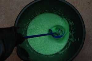 Si va a utilizar inmediatamente, compruebe que no está demasiado caliente si ha utilizado agua hirviendo. Si usted está haciendo adelantado usted encontrará que la espuma drena detrás relativamente rápidamente (dentro de unas 2 horas que será volver a la mezcla acuosa). Por lo tanto, probablemente tendrá que volver a batir antes de usar. También puede a punta a cualquier exceso de líquido como mejor parezca.