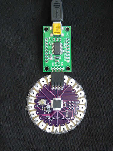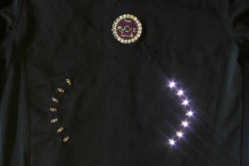 Para programar su ropa, copie y pegue mi código en una ventana de Arduino y cargarlo en el LilyPad. Que tenga que hacer algunos pequeños ajustes primero dependiendo de donde esté con luces e interruptores. Jugar con retrasos para personalizar tus patrones de parpadeo. Siga mis instrucciones Introducción de LilyPad si necesita más información sobre cómo programar el LilyPad o cómo entender mi código.
