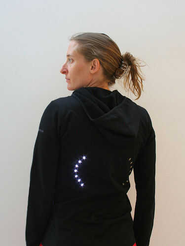Yo quería el interruptor izquierdo para encender la direccional izquierda durante 15 segundos o menos, y la derecha cambiará para hacer lo mismo para la señal correcta. Presionando un interruptor cuando el intermitente correspondiente debe apagar la señal. Presionar ambos interruptores a la vez debe poner la chaqueta en modo intermitente durante la noche. La muñeca LEDs montados deben informar sobre el estado actual de la chaqueta. Aquí está el código que escribí para ese comportamiento.