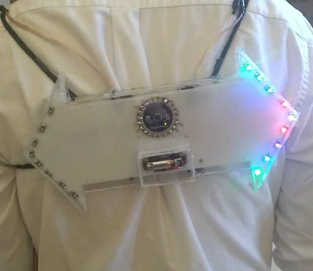 -La chaqueta es un gran remedio para la mayoría de estos accidentes ya que aumenta la comunicación entre los ciclistas y su entorno. El dispositivo ofrece manos libres activar señal y parada capacidad. Además, el dispositivo utiliza brillante multi coloreada LED para seguridad y conciencia.