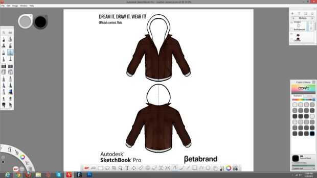 Mutiply, que le permite a color debajo de las líneas de la plantilla como Coloque todas las capas nuevas debajo de la capa de fondo. Después encontré los colores que quería usar, elegí uno de los pinceles sintéticos para darle la chaqueta un aspecto natural. Todo fue hecho con