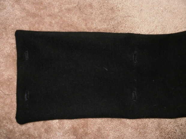 Coser y cortar dos conjuntos de ojales a la línea de con botones. Un sistema en el extremo de la máscara, para cuando se pone distancia, otro para cuando está en uso.