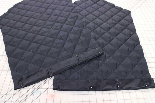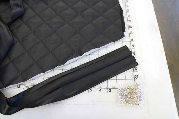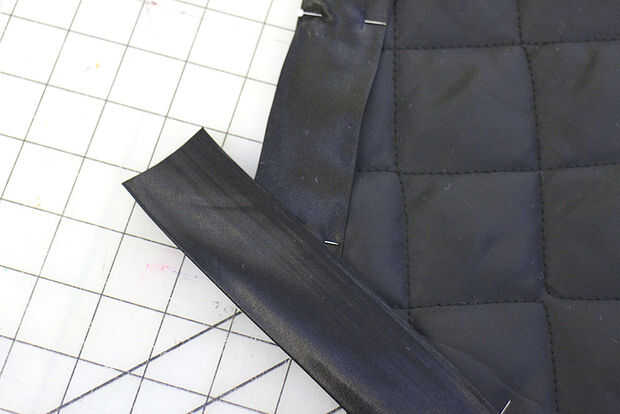 Para ello, primero echar un vistazo en el enlace, hay el doblez del medio con las dos mitades en cualquiera lado, una mitad será más corta que el otro. El atascamiento se cose con el lado más corto, por lo que el lado más largo será capturado por debajo. Prender la encuadernación por el borde con la mitad corto en el lado derecho de la chaqueta cada dos pulgadas para mantener en su lugar.