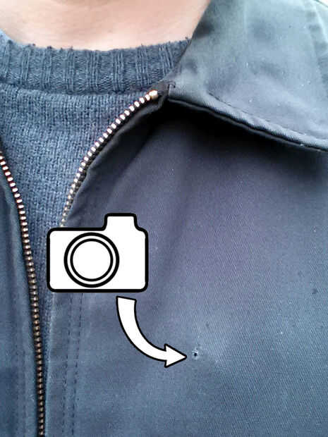 Este diseño tiene una pequeña cámara digital instalada en el forro de una chaqueta con la lente de grabación a través de una pequeña abertura en el pecho de la chaqueta. La cámara funciona con botones con cable en el puño de la chaqueta, el conjunto de cámara se lleva a cabo en lugar con los sujetadores de gancho y lazo y puede ser fácilmente separado para permitir la recuperación de carga y medios de comunicación.