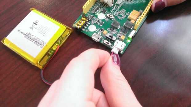 Queremos que esta cosa de ser móvil (no queremos un largo cable siguiendo nuestro niño en su bicicleta). Su linkit uno debe haber venido con una batería. Esta es otra de las funciones super cool de la linkit uno. No es necesario comprar alguna tarjeta especial o algo así como si tuviéramos un arduino, todo viene en un kit grande!