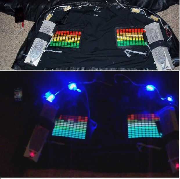 Siempre me había encantado gráficos ecualizadores, así que por qué no poner el Equalizador en la chaqueta. Y del LED. y un sistema de sonido.