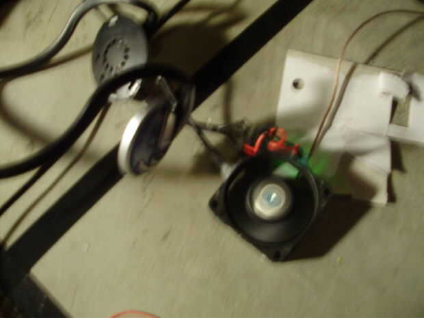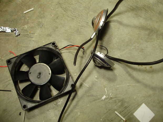 Montaje de esto fue una brisa. Todo lo que tienes que hacer es cortar el pedazo de micrófono en el auricular, pegamento caliente el ventilador en. Después caliente pegar el ventilador encendido, caliente pegamento top led. Luego suelde los cables positivos y negativos a sus posiciones respetadas.
