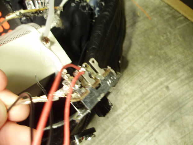 Usé un interruptor DPDT (doble interruptor doble tiro) y en había soldado. Para soldar correctamente un interruptor, en primer lugar de la soldadura de la