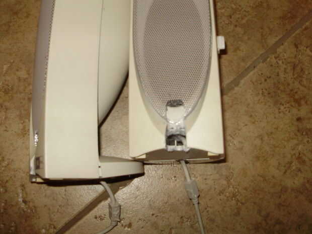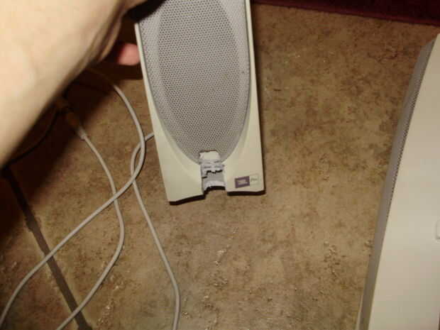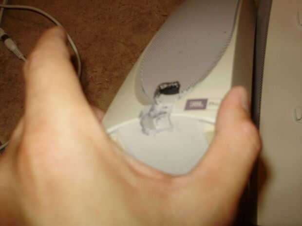 tenía la intención de colocar LED en donde se ilumina la parte interna de los altavoces. Para ello he molido a una muesca en el centro de cada altavoz que más tarde pude calientes del pegamento un LED.