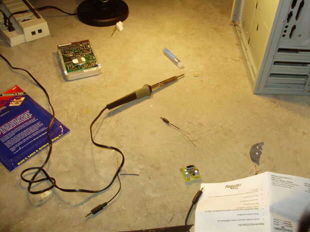 Soldar entre sí el amplificador, y puesto que el juego hizo que un micrófono de entrada y una salida para un altavoz, que tenía que hacer alguna modificación.