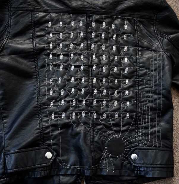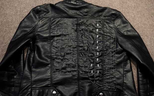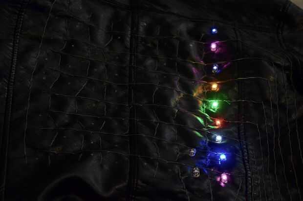 Una vez que tenga esta primera columna de LEDs en iluminación, es el momento de coser el resto en la chaqueta. Esto es un proceso desperdiciador de tiempo y así que es mejor ser espaciadas durante unos días. Asegúrese de probar cada columna medida que avanza. Puede hacer esto mediante la adaptación del código anterior para que el pin de la columna que desea probar se declara como una salida en la configuración y entonces se encuentra bajo en el circuito. Asegúrese que los pernos de la columna son tan altos como esto asegurará que ellos estén apagados.