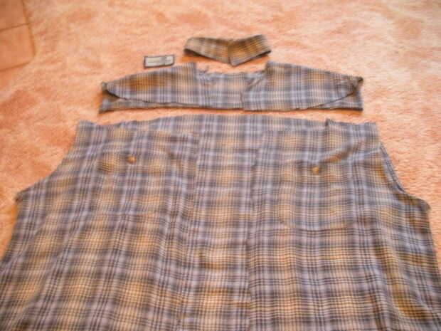 Luego quitar la camisa debajo de la chaqueta y cortar la parte superior y utiliza a mi destripador de la costura para quitar el collar. (Foto 2)