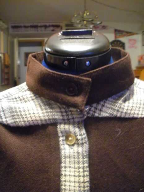 A continuación, como la banda de la cintura es mucho más tiempo que su collar será necesario deberás doblar el cuello para que los lados buena están uno frente al otro y coser apagado por lo que es con los botones. (Foto 2) Luego cortar y clip esquina (Foto 3)