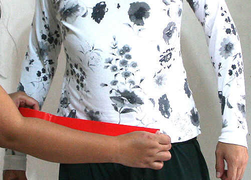 Que alguien inicie envolver cinta alrededor, de la cintura para arriba.