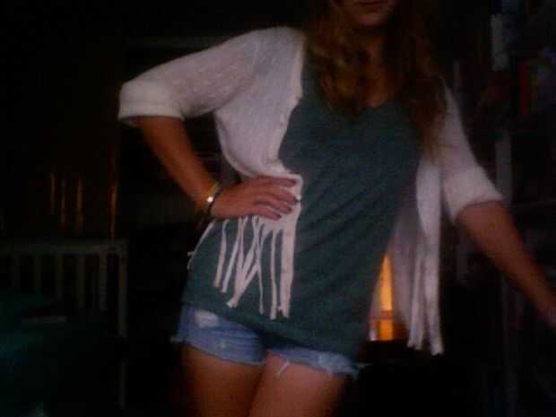 Usaba un suéter que obtuve de blanco para como $8 - mira en tiendas de segunda mano también!