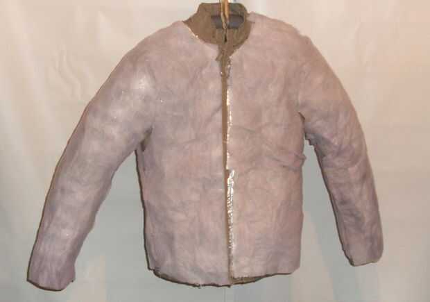 Aquí se puede ver la chaqueta todo cubierta con la estera de cottonwool. It´s no perfecto pero suficiente para nuestras necesidades ya que la principal tarea de la estera de cottonwool es difundir la luz de los LEDs.