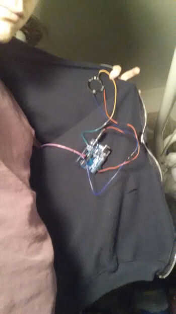 2. cosa el arduino al lado derecho de la camisa en el interior, hay 4 agujeros grandes en el tablero que son perfectos para garantizar a la chaqueta con hilo