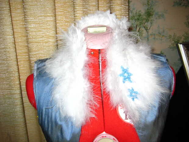 Cuando terminé añadiendo las plumas había cosido 2 de los copos de nieve en 1 lado.