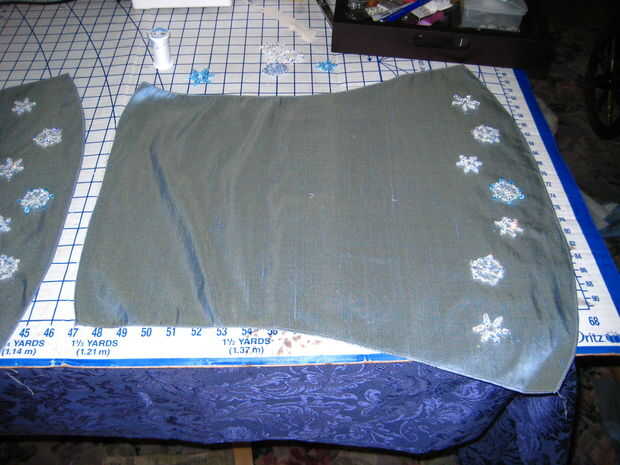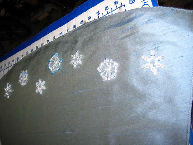 Después de cosí en algunos cristales de swarovski sueltos en líneas onduladas por lo que se veían