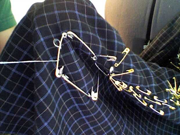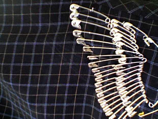 Gravedad tenderá a tirar todos sus pernos hacia abajo. Si los pasadores se necesitan mentir cierto cierto, usar la aguja y el hilo de coser los pasadores hacia abajo. (Yo uso hilo de plata, ya que es menos visible). Esto les dejará de moverse cuando usted usa la chaqueta, pero no siempre es necesario.