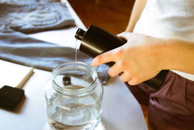 Se preparan para aplicar Inkodye. Utilicé un pincel de esponja estándar y regado mi Inkodye abajo un poco para lograr la viscosidad deseada. Inkodye puede ser regada abajo 1:1 con agua sin ningún cambio en la profundidad del color en la impresión resultante.