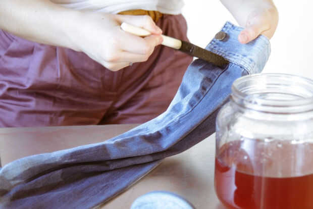 Inkodye se aplican en las áreas más detalladas de la prenda. Utilicé el mismo pincel, pero se podría cambiar a uno más pequeño para un mayor control.