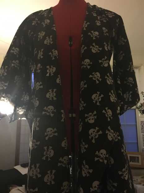 Prender la primera pieza frente a la pieza trasera, lados del derecho juntos, cuidadosamente emparejando encima de las mangas.