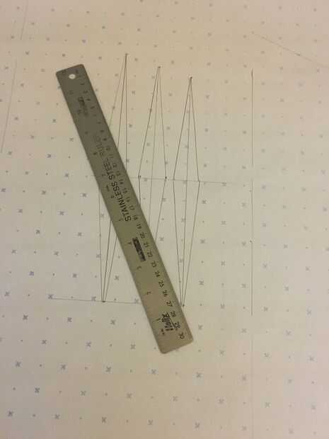 Coloque la primera pieza de patrón sobre otro pedazo de papel y dibujar alrededor de ella: completar el rectángulo pero donde la pendiente empieza en la primera pieza de la marca.