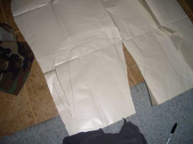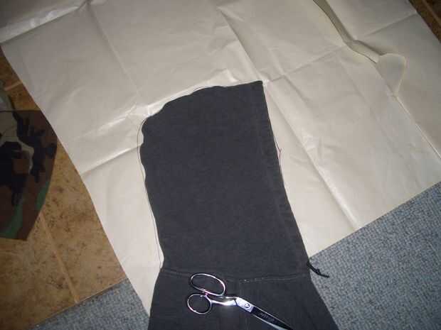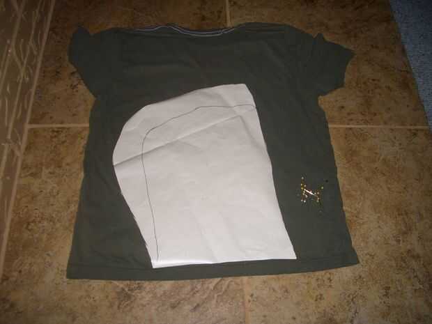 Comenzamos trazando la campana de una de sus camisas favoritas en el periódico y corte hacia fuera, es importante en este paso que observamos que debe dejar cierto margen para la costura así que agregue una pulgada extra o así todo el camino alrededor. luego nos de hierro el patrón y la camisa para que tengamos un corte constante. Después fijar el patrón a la camisa a través de ambas capas y cortar hacia fuera de la habitación dejando para coser. Así que me salga sin camisa mangas.