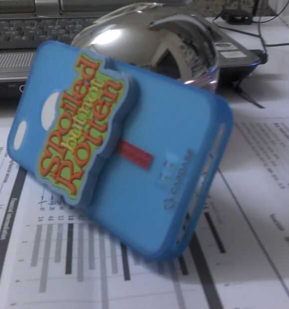Primera portada, simplemente super pegué una declaración fría en la parte posterior de una azul caja de Iphone.