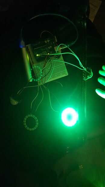 Cuando usted tiene el Arduino, batería y Protoboard componentes firmemente sujetas, probar en la chaqueta sí mismo para asegurarse de que todos los componentes estén alineados y en las orientaciones correctas. Conectar el Arduino a la batería y probar los sensores hacia fuera en la chaqueta. Esta manera, tendrás una sensación de cuánto hilo deberás coser y cuántos cables extras tendrás que añadir para estirar hacia fuera el sistema eléctrico para que los sensores de movimiento son en el exterior de la camisa y los anillos de LED en las mangas cerca de las muñecas.