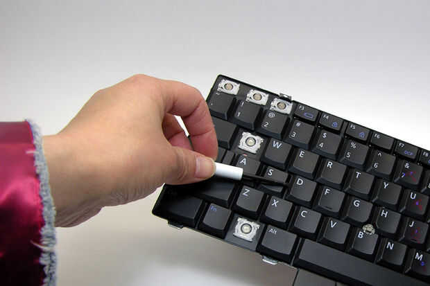 Quitar las llaves por estallar. Usé mis manos porque siempre están en el, no tengo que buscarlas. Si sus uñas son delicadas, se puede utilizar un destornillador. No requieren mucha fuerza, use una fuerza ligera. Incluso actuó un imagen para usted. Otra vez usé mis dedos aunque.
