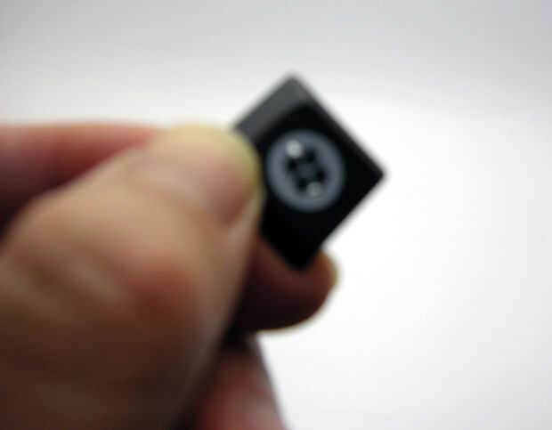 Pegar la punta de cuchillo a uno de los dos puntos en la llave que desee perforar, mantenga presionada la tecla con una mano y gire la cuchilla con la otra mano hasta que pasa a través de la parte trasera de la tecla, hacer esto desde el lado posterior también a hacer el agujero del mismo tamaño en parte delantera y trasera. El agujero sólo tiene que ser lo suficientemente grande como para una aguja de coser grande y 4 hebras de hilo de tapicería.