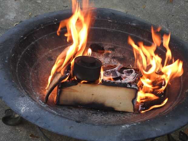 una vez dentro el fuego después de un minuto o dos, usted notará algo de humo y tal vez una llama, no se alarme, que significa su trabajo y los gases son quemar, una vez que vea que hay no más humo o fuego que sale de la lata está listo para ser extraído y colocado a un lado.