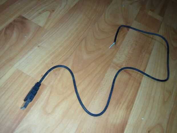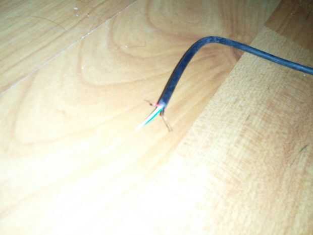 Corte el alambre y enfocar cuatro hilos encuentran hilos rojos es el positivo y el negro negativo.