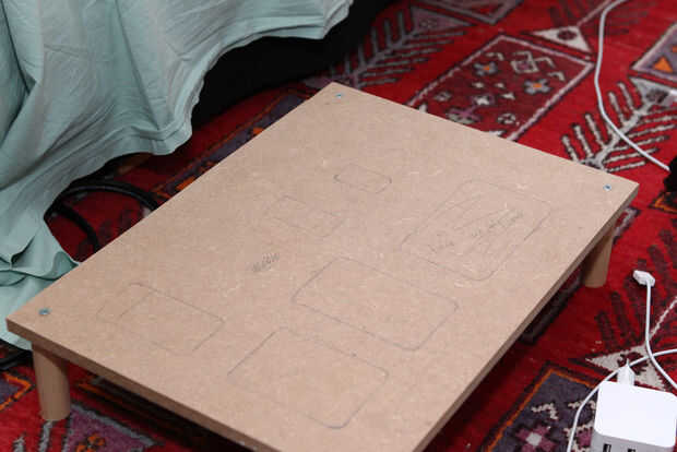 Y no te olvides de donde quieres tener el agujero del cable (que se alimenta todo) sobresalga.