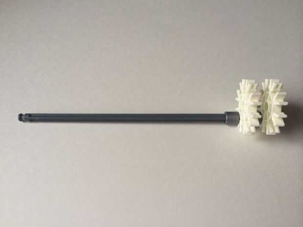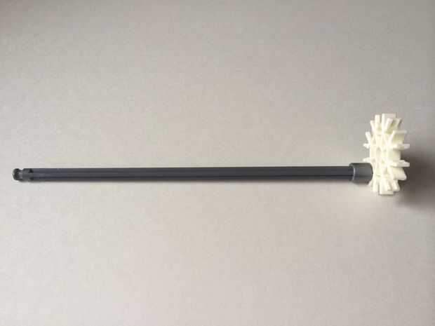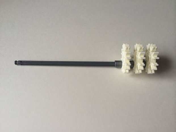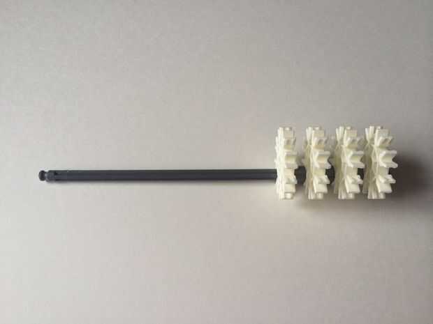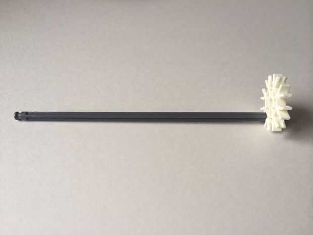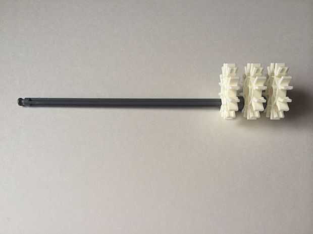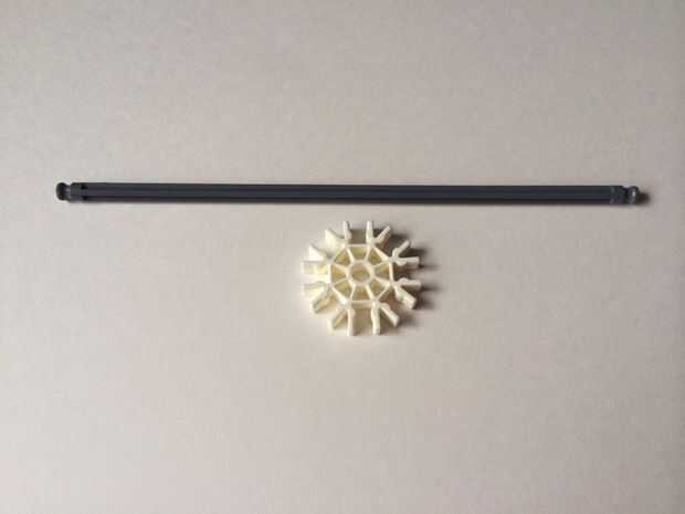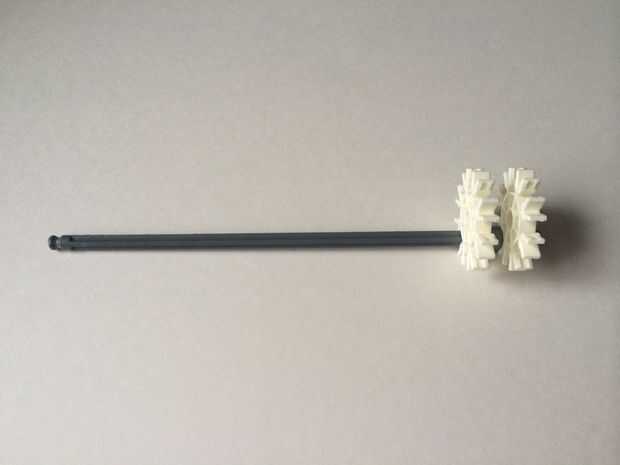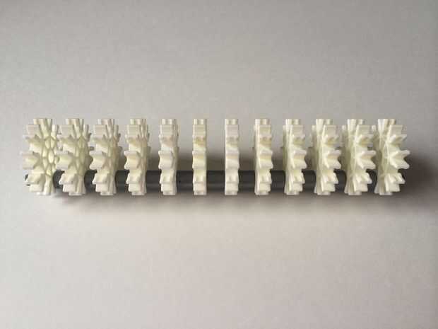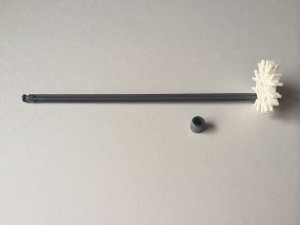 Comience agregando un conector blanco de una barra gris, como en fotos 1 y 2. A continuación, agregue un separador gris en la varilla, como en fotos 3 y 4. Continuar el patrón, como en los cuadros 5 a 10, hasta tener un total de 12 conectores blanco en la barra gris, con 11 gris separadores en el medio, como en cuadro 11.