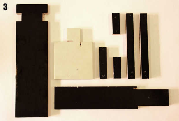 El pico del pingüino está hecho de MDF. La forma más sencilla de hacerlo es cortar un pedazo largo, ancho 20 mm y luego todas las piezas de éste. (foto 4)