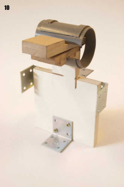 Como la primavera está en su lugar ahora, puede conectar el labio superior al cuello usando el poco hing (foto 6). El resto del montaje es bastante recto perverso. Atornille los soportes de Ángel en el cuerpo del pingüino. Tres de ellos se utilizan para fijar el pingüino en el recipiente (para evitar que le salga). Uno se utiliza para colocar el cable del freno (foto 11). Taladre un agujero en la parte posterior del labio superior y saque el cable de freno a través de.