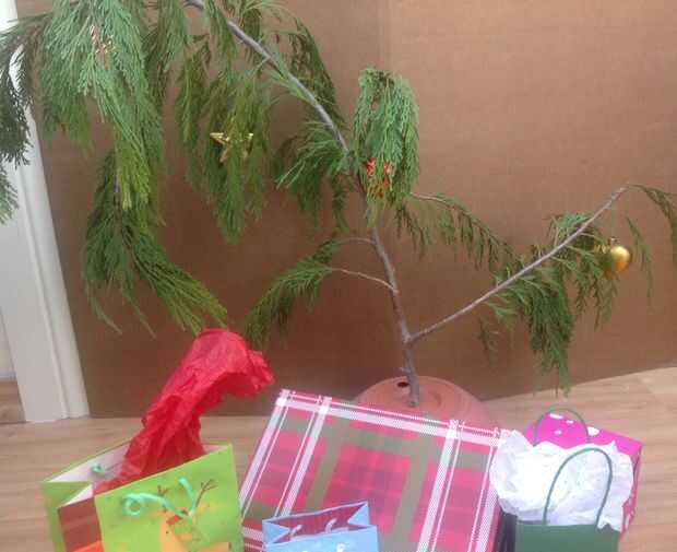 desde este año he tenido un árbol plástico para Navidad decidí que quería mi casa a oler como un verdadero árbol de Navidad Me decidí a hacer un árbol de Navidad de Charlie Brown con el árbol en el patio de mi casa que olía a Navidad Era muy fácil hacer esta Navidad Encadenan unos adornos y se pueden utilizar luces Of Course no olvidó el adorno bola roja:)