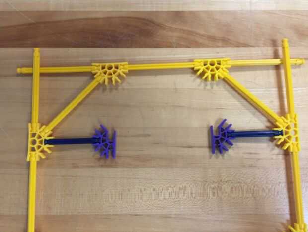 ~ Lugar 2 azul palos en 2 conectores paralelo amarillo 180 grados y coloque los 2 conectores de púrpura 180 grados en el extremo
