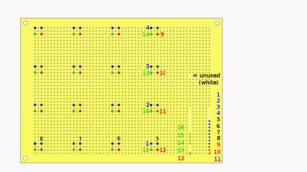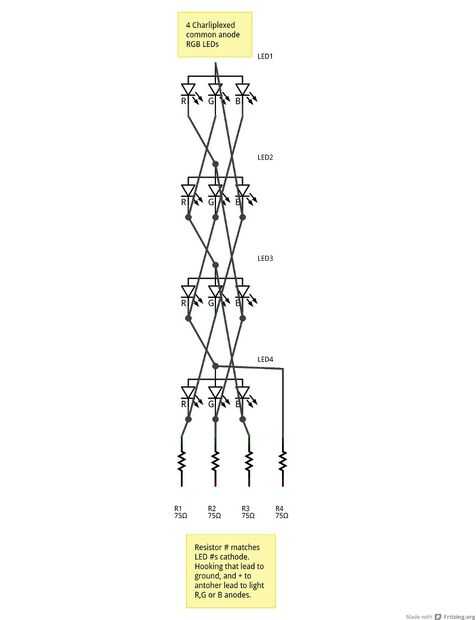 El último diagrama muestra cómo alambre de arduino para el cubo desde el lado del tablero de circuito.