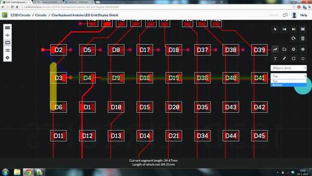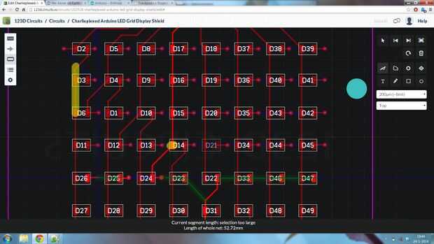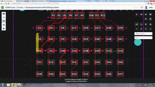 Ahora para los LEDs. Alguna manera circuito 123D hizo un pedido muy extraño de mi LED. Así que lo que hice fue volver a la vista de breadboard, consultar todos los números de los LEDs y escríbalas. Ahora en vista PCB simplemente copié el diseño.
