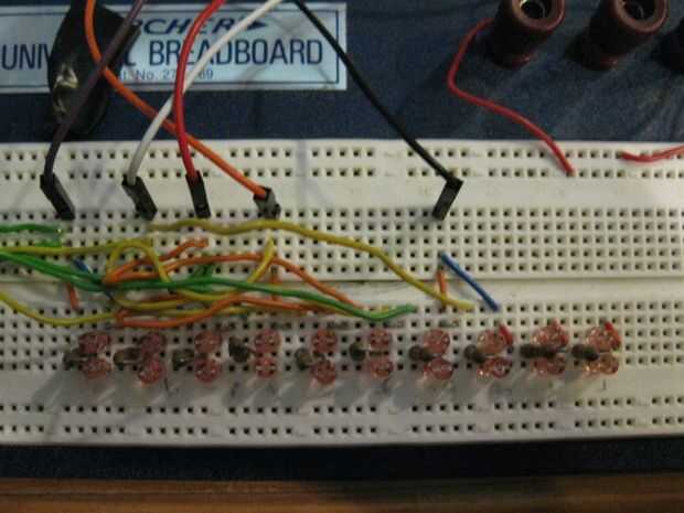 Para que tenga cuatro lleva ya. Añadir cuatro pares de LEDs. Luego conecte el primer par entre la primera y la nueva. El segundo par entre la segunda y la nueva de alambre. Y así sucesivamente. Las imágenes de abajo muestran este proceso.