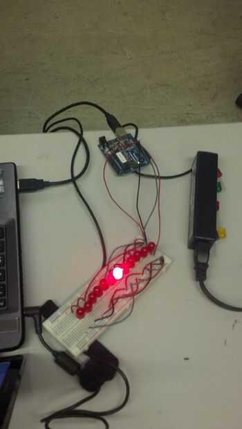 Después de que han decidido cómo alambre hasta entonces sobre la transferencia a un tablero de pan con los LEDs y ejecutar sus líneas para Arduino en pernos 13-10.