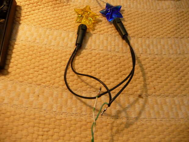 Después de encontrar lo positivo soldar hasta en establece cada set con el positivo y negativo de cada LED soldada juntas. Puede probar si ya lo tienes con la caja de batería - tocar los cables a los cables de la batería, un LED debe encenderse - invirtiendo los cables debe encenderse otro.
