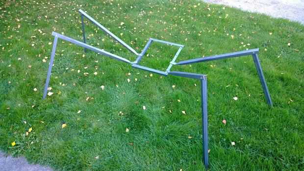 La araña de hierro de ángulo es un poco endeble pero que permitió la libertad de mover las piernas en la posición deseada y luego empujarlos en el suelo un poco lo que es más robusto.