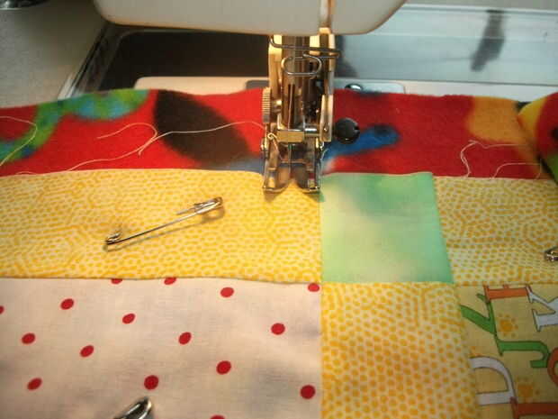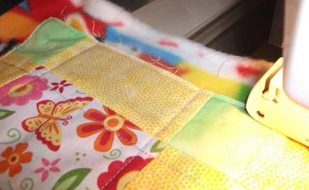 Empieza en medio de un borde y, manteniendo el borde de su pie al lado de la costura, coser por todo el tejido para que cosa por las plazas de encanto. Al llegar al otro lado, cortar sus hilos y volver a tu lado que comienza y coser de la misma manera en la siguiente línea de cuadrados de encanto. Repetir por todo el tejido. Hacer lo mismo desde el extremo de la mantita. Usted debe terminar con una rejilla limpia agradable de costura.