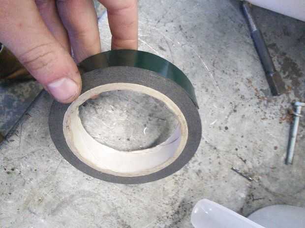Ya sabía que el travesaño todavía puede causar daños en una superficie si accidentalmente fue golpeado o empujado, por lo tanto utilicé cinta teníamos y pegado que a cada extremo. Esto amortigua al travesaño y previene el daño si se produce el evento. Corte la cinta con sus tijeras y dejarlo reprimieron durante unos minutos asegurar una buena adherencia. * Una mejora aquí sería utilizar pies de goma que se encuentran en cosas como el sonido Stereo