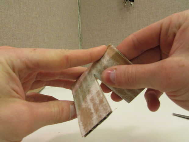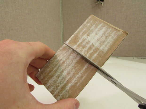En las fotos anteriores, he frotado mi cartón con tiza, por lo que se puede ver claramente la huella del grano en la superficie. Cuando usted corta tu cartulina, usted quiere asegurarse de que su grano corre longitudinalmente a lo largo. Si no, tu robot no será casi igual de robusto y este diseño puede no funcionar para usted.